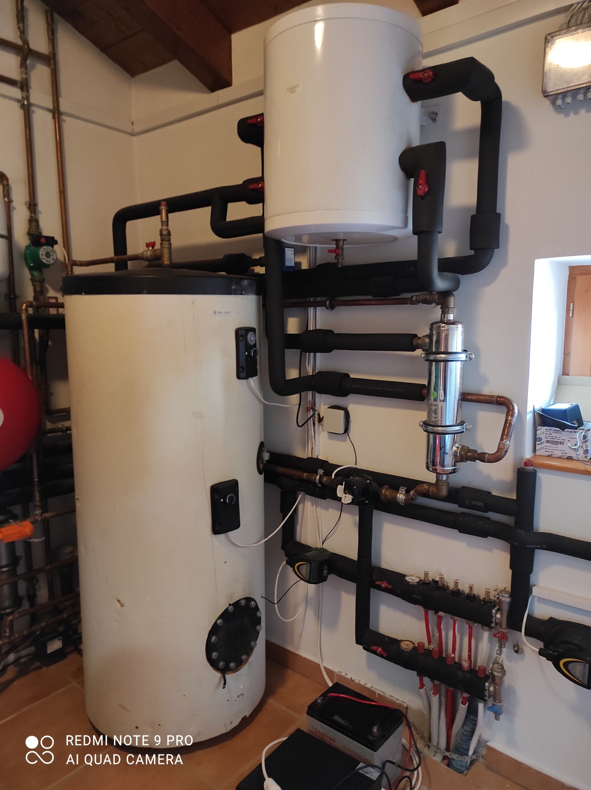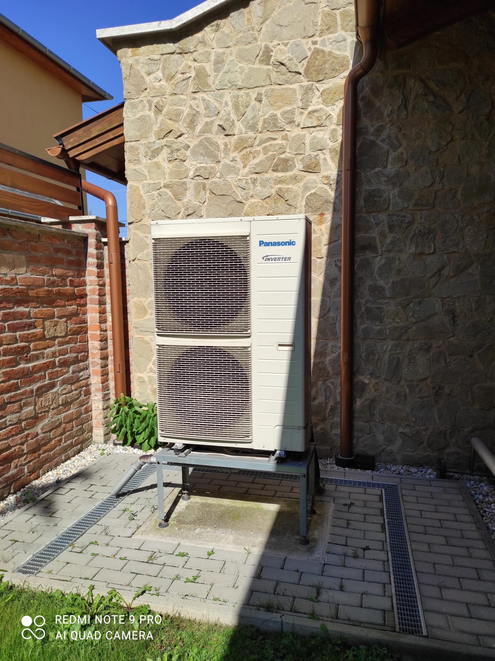 Győrben, Pinnyéden egy családi ház már meglévő, működő rendszerébe illesztettünk bele egy 16 kW teljesítményű, Panasonic márkájú, T-CAP típusú monoblokkos hőszivattyút, melynek működését a 3 már beépített hőtermelővel, egy kondenzációs gázkazánnal, egy vízteres kandallóval és napkollektorokkal összehangoltuk. A hőszivattyű áramszükségletét természetesen általunk telepített napelemek biztosítják.